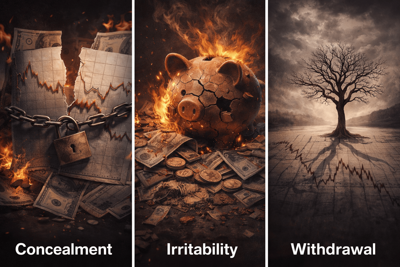 In clinical consultations with investors, one of the most consistently emerging themes is not money — it is relationships. Sustained financial losses produce a recognizable behavioral pattern across cultures and demographics.